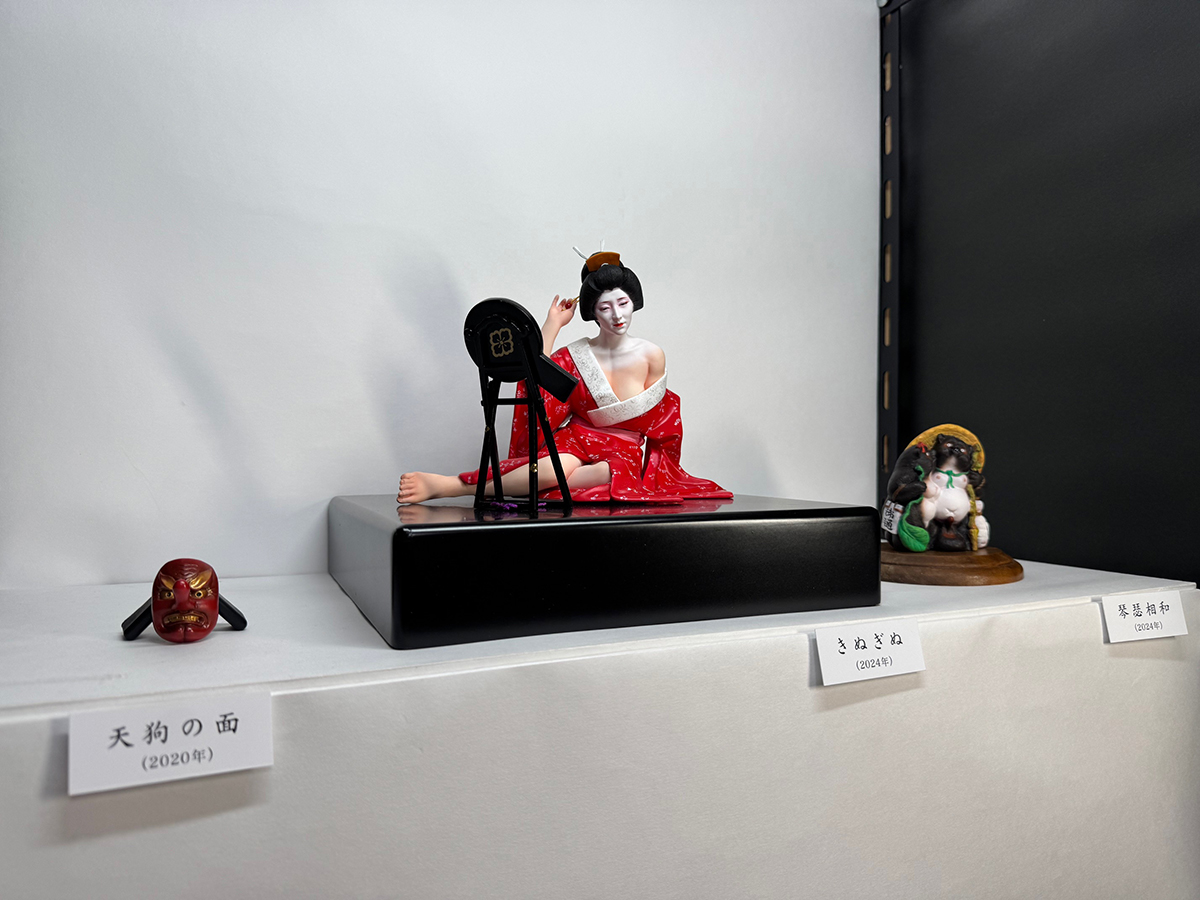展示した作品『人力車』制作と会場の様子。テレビ神奈川『Hi!横濱編集局』で放送されました。